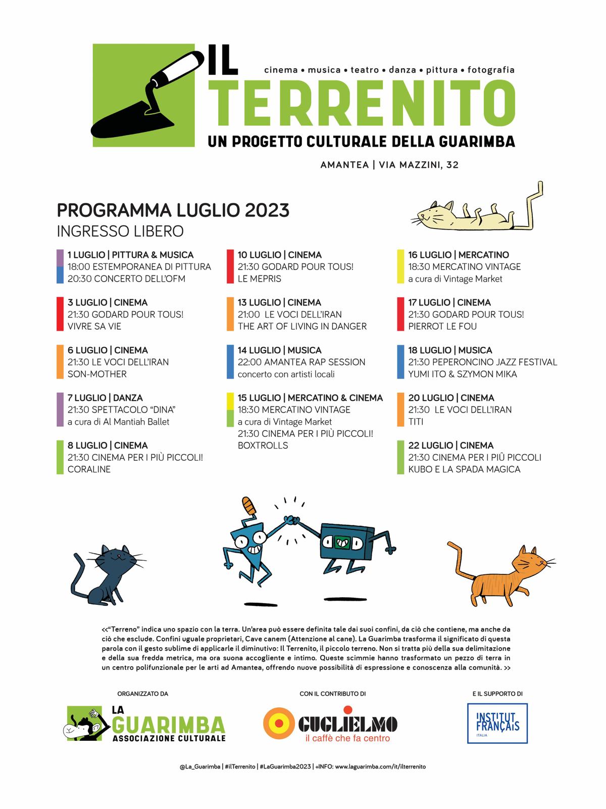 (48) Dal 1 al 22 luglio Il Terrenito riapre le sue porte alla comunità di Amantea, ospitando un programma estivo di 16 eventi culturali ad ingresso libero, tra cinema, musica, performance di danza, mostre di pittura ed incontri tematici.