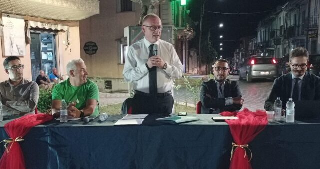 «Cinquefrondi è sport!». Così, il sindaco metropolitano facente funzioni, Carmelo Versace, ha presentato gli interventi su altrettanti impianti sportivi che cambieranno in meglio il territorio cinquefrondese e, più in generale, l’intera Piana di Gioia Tauro. Insieme a Michele Conia, primo cittadino del Comune pianigiano, nonché consigliere metropolitano, ed al consigliere comunale delegato allo Sport, Giuseppe Luciano, Carmelo Versace, supportato dai tecnici dell’ente e davanti ad un folto pubblico raccolto in Piazza della Repubblica, si è soffermato sulla consegna dei lavori della Tensostruttura, sui lavori di adeguamento del PalaBonini e sull’investimento che, per 1,5 milioni di euro, consentirà l’ammodernamento dello stadio comunale “Cimino”.