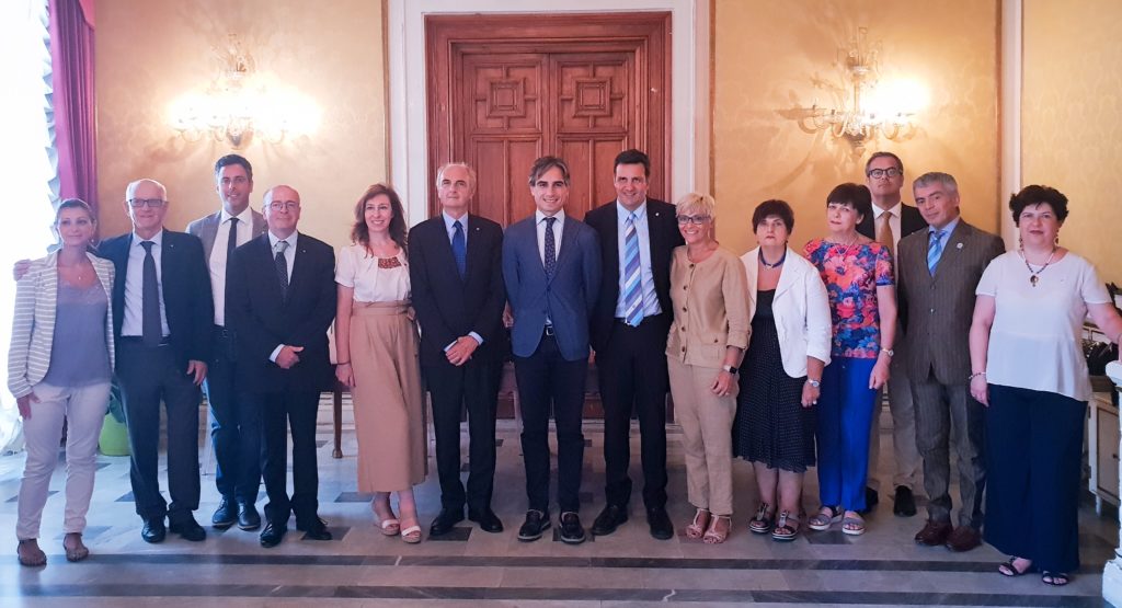 (741) Il sindaco della Città Giuseppe Falcomatà ha ricevuto questa mattina a Palazzo San Giorgio la visita istituzionale dei rappresentanti del Distretto Rotary 2100. All’incontro, al quale hanno preso parte anche il Vicesindaco del Comune di Reggio Calabria Armando Neri, l’Assessore delegato alla Valorizzazione del Patrimonio Culturale Irene Calabrò e il Consigliere Delegato Valerio Misefari, era presente una delegazione dei quattro Rotary Clubs cittadini rappresentati nell’occasione, rispettivamente, dal Governatore Ingegner Salvatore Iovieno e dai quattro Presidenti cittadini Notaio Stefano Poeta, Dottoressa Alessandra Testa, Dottoressa Tommasina D’Agostino e Dottore Giuseppe Squillace. Durante l’incontro, proficuo e cordiale, è stato avviato un percorso sinergico tra l’Amministrazione comunale ed i rappresentanti dei Rotary Clubs della Città per la promozione di progetti comuni volti alla valorizzazione dei beni culturali e delle produzioni tipiche di qualità come il bergamotto di Reggio Calabria.