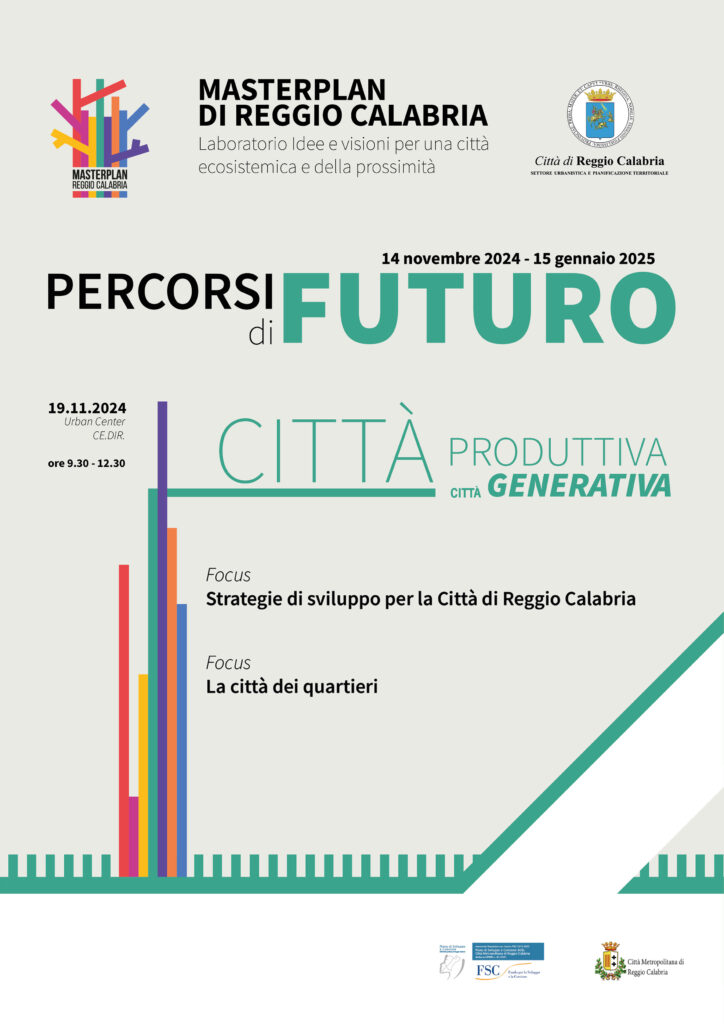 (478) Si sono svolti il 14 e il 15 novembre 2024, presso i locali dell’Urban Center al Cedir, i primi 2 -dei 4 incontri previsti- che hanno avviato i 4 tavoli tematici di lavoro rivolti ai vari soggetti operanti sul territorio comunale con l’obiettivo di renderli attori protagonisti nella definizione condivisa dei contenuti del Masterplan di Reggio Calabria e, dunque, della visione futura della città.