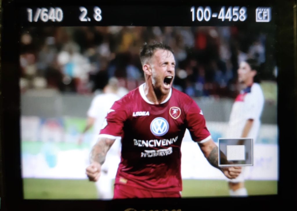 (314b) Reggina-AZ Picerno: 4-1.Reggina (3-4-1-2): Guarna; Loiacono (Gasparetto dal 62°), Blondett, Rossi; Garufo, Bianchi (Salandria dal 73°), De Rose, Rolando; Bellomo (Paolucci dal 62°); Denis (Doumbia dal 70°), Corazza (Reginaldo dal 62°). A disposizione: Lofaro, Farroni, Marchi, De Francesco, Rivas, Bresciani, Rubin. All.: Toscano. AZ Picerno: (3-5-2): Cavagnaro; Priola, Fontana, Bertolo (Soldati dal 56°); Vanacore, Langone, Pitarresi, Vrdoljak, Fiumara (Nappello dal 56°); Esposito (Lorenzini dal 56°), Santaniello (Sparacello dal 56°). A disposizione: Fusco, Caidi, Ruggieri, Sambou, Calabrese, Calamai, Melli, Guerra. All.: Giacomarro. Arbitro: Miele (Nola). Assistenti: Barone (Roma 1) e Politi (Lecce). Marcatori: Santaniello al 31°, Denis al 42°, Rolando al 44°, Corazza al 47° e Denis al 52°. Ammoniti: Langone al 34° e Rossi al 55°. Corner: 8-0. Recupero: 1’ (pt) e 3’ (st). Spettatori: abbonati 5001; paganti 4225 (14 ospiti); totali 9226. Incasso: quota abbonati 35.365,83 €; quota paganti 47.980,70 €; totale 83.346,53 € . Cronaca e commento. Primo tempo. Al 6° prima azione degna di nota per gli amaranto: Corazza, di testa, sul cross da sinistra, spizzica il pallone che termina sul fondo distante dalla porta di Cavagnaro. Si vede il Picerno: Esposito dribbla Loiacono ed entra in area, palla tesa al centro, Guarna anticipa Santaniello. Al 17° ancora Reggina: Denis prova da fuori area, respinto in corne. Al 18° ghiotta occasione per i padroni di casa: palla a Blondett all’altezza del dischetto, al tiro ci arriva scoordinato e la palla finisce altissima sulla traversa. Al 28° ci prova Esposito da fuori area, pallone ampiamente alto sulla traversa. La gara scorre a ritmi lenti, la Reggina è costantemente nella metà campo avversaria ma i lucani si difendono compatti con ordine e non concedono spazi utili. Al 31° accade quello che non ti aspetti con gli ospiti che passano in vantaggio: è Santaniello a raccogliere un assist rasoterra e, di sinistro, a battere un incolpevole Guarna nel “sette” alla sua destra. Il calcio è uno sport meraviglioso: la Reggina gioca, subissa il Picerno in quanto a possesso palla, produce 7 corner a 0, attacca con costanza ed, invece, è la matricola lucana a passare in vantaggio in maniera del tutto imprevedibile. Al 36° ci prova Denis di testa, alto. Da segnalare che è la prima volta che la squadra di Toscano si trova a dover rincorrere in casa (e la seconda in 11 gare). Al 39° la squadra di Giacomarro va vicinissima al raddoppio. E’ Esposito che, da destra, si accentra godendo di eccessivo spazio e calcia sul palo alla sinistra di Guarna che, superandosi, si tuffa e para a mano aperta salvo poi bloccare. Al 41° si rivede la Reggina: Loiacono colpisce di testa un tiro in porta schiacciato, palla alta. Al 42° la Reggina pareggia. E’ Denis, alla sua prima marcatura, a battere Cavagnaro con un piatto destro rasoterra che s’infila alla destra del portiere ospite. Al 44° la Reggina raddoppia: Bianchi lancia in verticale in area, Rolando s’inserisce con perfetta scelta di tempo ed insacca con un colpo di testa morbido che supera Cavagnaro. Valori in campo ristabiliti e meritatamente al riposo. Secondo tempo. Meno di due minuti e Corazza mette il marchio anche su questa gara con il suo nono goal in undici gare: Denis crossa da destra ed il bomber amaranto insacca di testa. Minuto 52, la Reggina fa quaterna: è ancora “El Tanque” Denis a ricevere il pallone da Bianchi (secondo assist della serata) al limite dell’area, l’argentino entra in area e con un preciso piatto destro batte l’incolpevole portiere ospite per la sua personale doppietta. Reggina padrona (grazie ai risultati odierni, Picerno annichilito. Al 56° Giacomarro alza bandiera bianca in segno di resa ed effettua 4 cambi simultaneamente: escono Santaniello, Fiumara, Esposito e Bertolo ed entrano Sparacello (ex mai rimpianto), Nappello, Lorenzini e Soldati. Al 62° Toscano ne cambia 3: escono Loiacono, Bellomo e Corazza ed entrano Gasparetto, Paolucci e Reginaldo. Al 70° Toscano concede la standing ovation all’autore della prima doppietta con la maglia amaranto: esce Denis ed entra Doumbia. Al 73° Toscano effettua la sua ultima sostituzione: esce Bianchi ed entra Salandria. La partita, com’è ovvio che sia, non ha ormai poco nulla da dire: dopo la paura, durata 10 minuti o poco più, la forza della Reggina ha ristabilito la verità circa i valori in campo, chiari, netti. All’80° ultimo cambio anche per gli ospiti: esce Langone ed entra Ruggieri. Ci ha impiegato 11 giornate la squadra di Mimmo Toscano ma da stasera, ed almeno fino a domenica prossima (occhio al redivivo Avellino di Eziolino Capuano, capace oggi di infliggere la sconfitta alla Ternana in terra umbra), guarda tutti dall’alto in basso forte di un primo posto assolutamente strameritato. Ad maiora, Reggina!!!