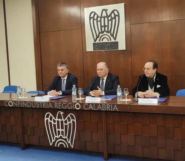 (4) Ad introdurre la discussione, il presidente di Confindustria Reggio, Domenico Vecchio. “La città metropolitana di Reggio Calabria, ha il secondo porto più importante d’Europa, Gioia Tauro, uno