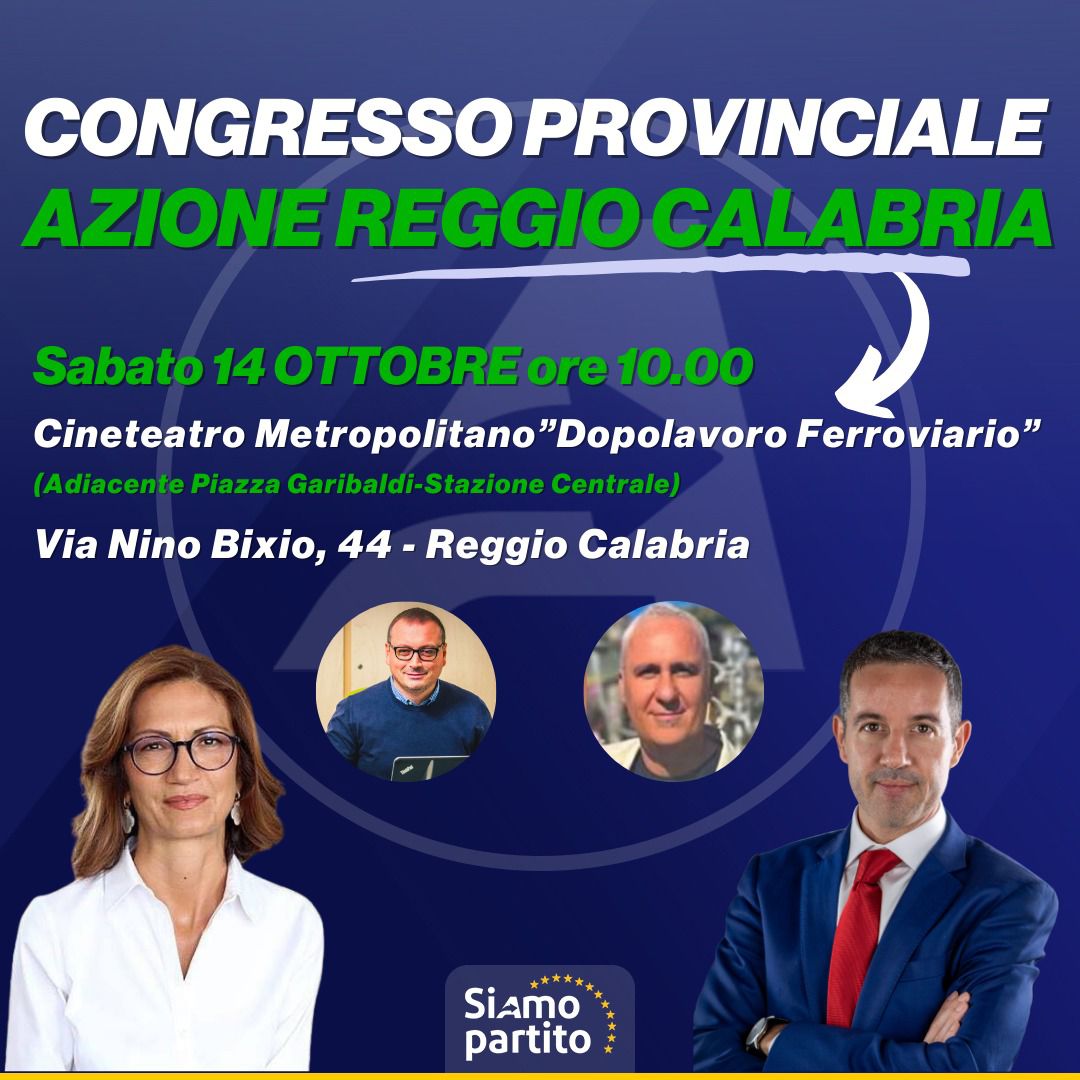Azione Reggio Calabria scalda i motori per il suo congresso provinciale. Sabato 14 ottobre alle ore 10.00 al Cineteatro Metropolitano, ex Dopolavoro Ferroviario, in piazza Garibaldi, si terrà la massima assise provinciale del partito di Carlo Calenda.